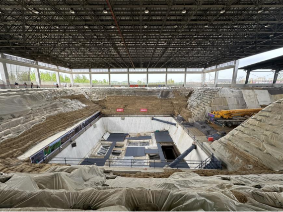 4月16日下午,記者在探訪武王墩墓考古現(xiàn)場時看到,考古發(fā)掘與實驗室保護(hù)研究工作正在同步有條不紊地推進(jìn)。